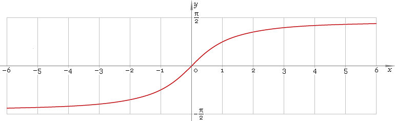 Help 6.14arctan or arctg — trigonometric arc tangent function1. DefinitionArc tangent is inverse of the tangent function. arctanx ≡ taninvx2. GraphArc tangent is monotone antisymmetric function defined everywhere on real axis. Its graph is depicted below in fig. 1.
